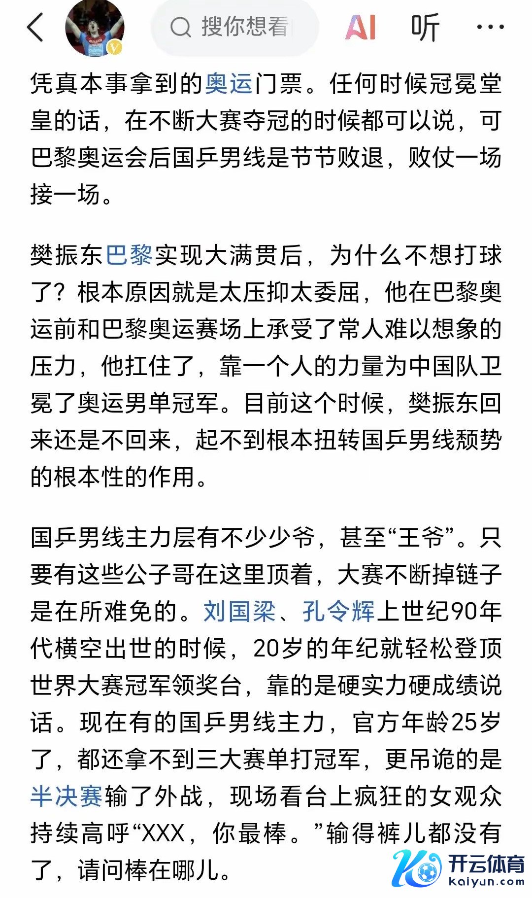 媒体东谈主雒城体育发文暗示,巴黎奥运会上,樊振东凭借一己之力奏效卫冕男单冠军。就算樊振东总结,也搞定不了问题。脚下的问题是毁灭王爷少爷。固然莫得点名王爷或少爷是谁,但明眼东谈主一看就知谈是指王楚钦。25岁的王楚钦,在巴黎奥运会之后依然联贯输外战,况兼这么的年事段,寰宇三大赛上还莫得冠军进账,这在以往是不能能的。此次寰宇杯半决赛,王楚钦被淘汰,现场球迷还称王楚钦最棒。