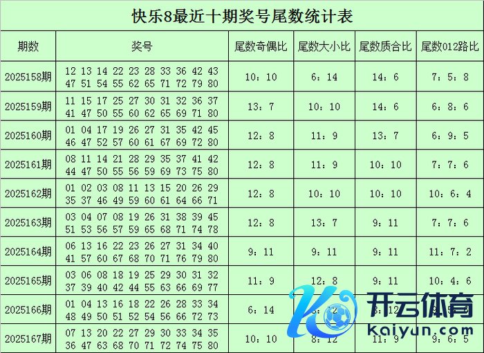 福彩欢畅8第2025167期开奖总结:07 13 20 22 27 29 30 33 34 35 36 47 63 68 70 71 72 74 75 80,其中奖号余数奇偶比为10:10,余数012路比为9:6:5,余数大小比为8:12,余数质合比为11:9。
