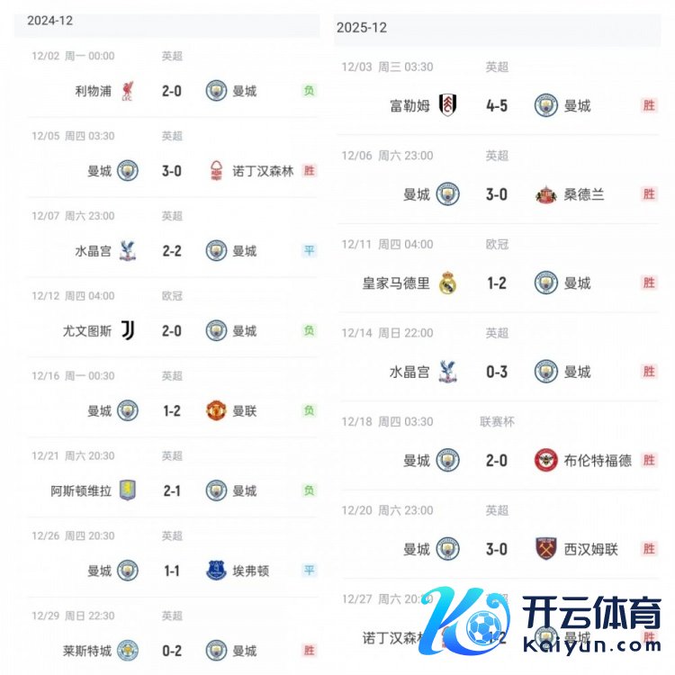 前年12月的曼城,和本年12月的曼城