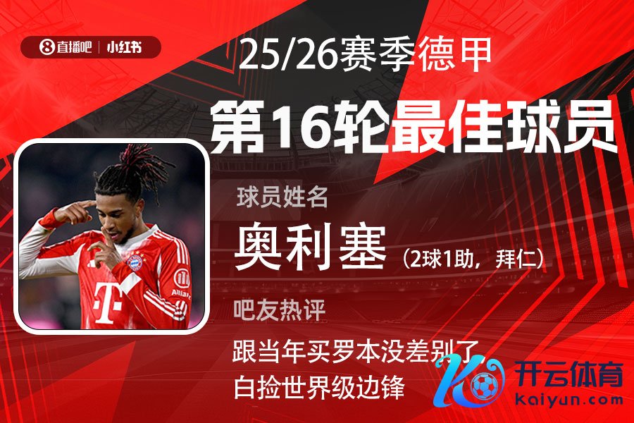 第16轮评比服从出炉,拜仁时尚奥利塞2射1传,助球队8-1狂胜沃尔夫斯堡,奥利塞获取杰出25000名吧友的复古,当选【X小红书德甲第16轮最好球员】!