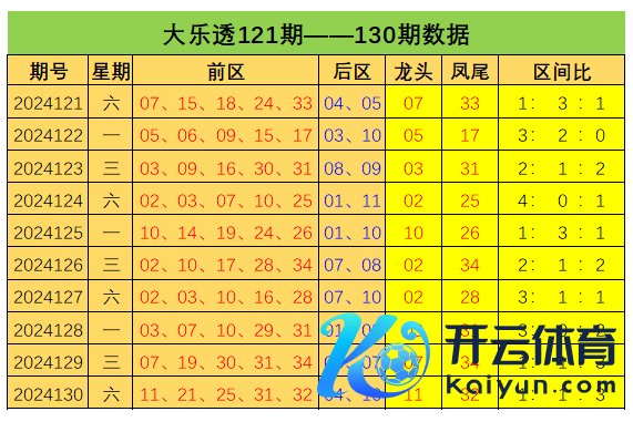 大乐透第2024130期出奖号统计:前区11 21 25 31 32,后区04、10,和值为120,跨度21,龙头11凤尾32,三区比为1:1:3,012路比为1:2:2,奇偶比为4:1,大小比为4:1,冷热比为4:1沙巴体育网信息,1枚重号,1组连号。