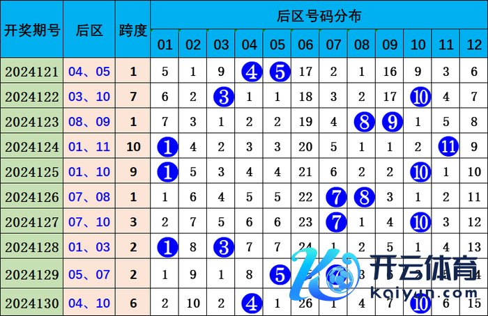 前二区(13-24):最近10期共开出13个号码,出号较冷,该区奖号本期善良:17、23。