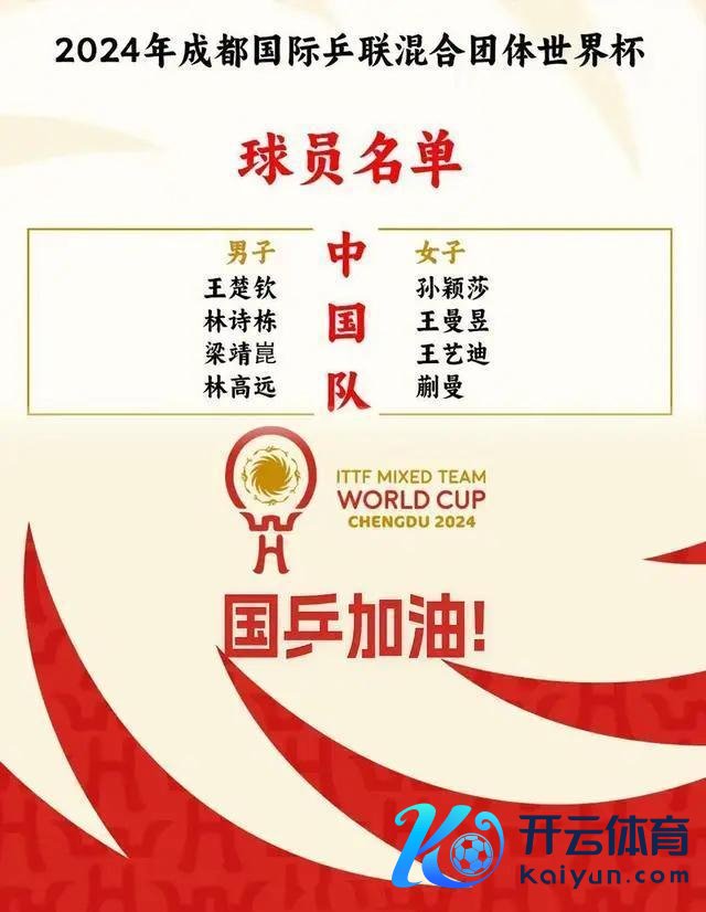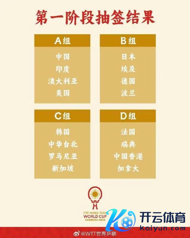 11月30日,2024年景皆外洋乒联夹杂团体寰球杯抽签典礼举行。中国与印度、澳大利亚、好意思国同在A组。