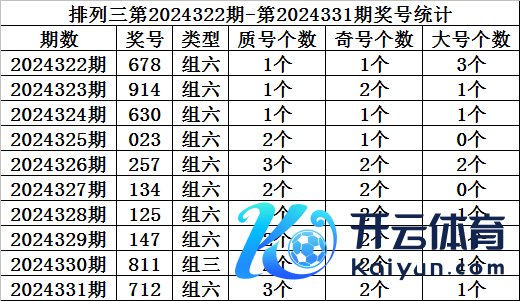上期追思:枚举三第2024331期开奖:712,质合比为3:0,奇偶比为1:2,大小比为2:1。