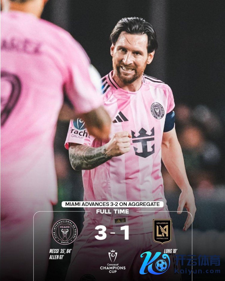 4月10日讯 中北好意思冠军杯1/4决赛次回合比赛,迈阿密外洋主场3-1打败洛杉矶FC,两回合总比分3-2晋级。