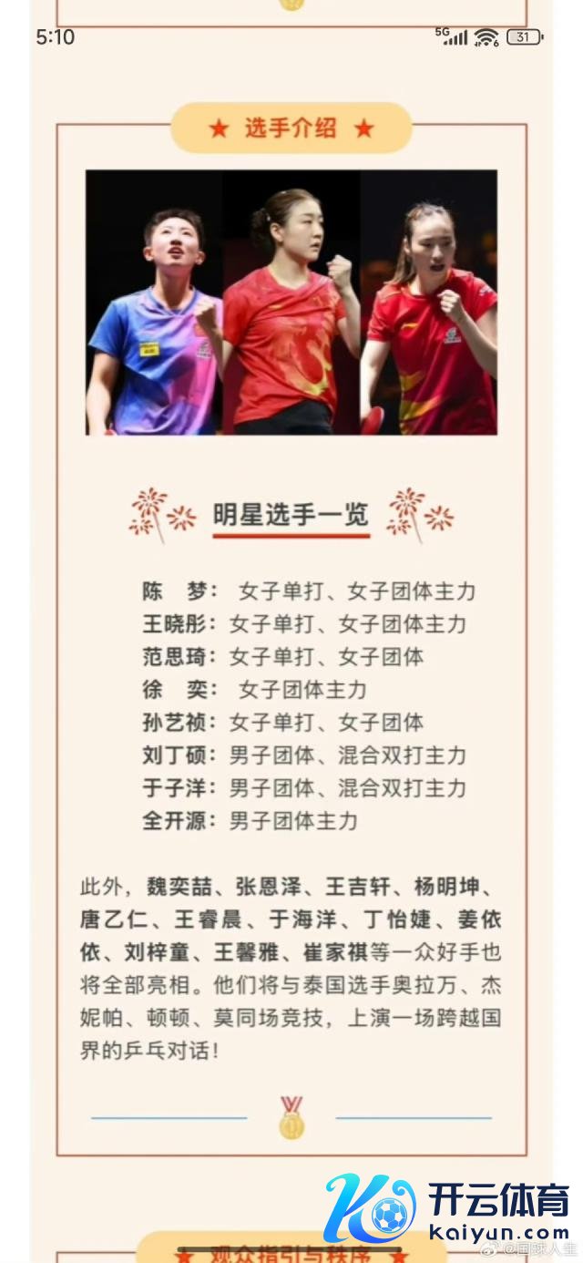 今天,山东队将在山东大学与泰国选手进行友谊赛,陈梦、王晓彤、范念念琦、徐奕、孙艺祯、刘丁硕、于子洋、全开源等一线主力将全部出席,魏奕喆、张恩泽、王吉轩、杨明坤、唐乙仁、王睿晨、于海洋、丁怡婕、姜依依、刘梓童、王馨雅、崔家祺等后劲新星也将全部亮相,泰国这边有奥拉万、杰妮帕等着名选手。