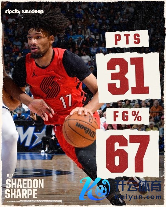 赛后,开采者官方发布夏普31分&67%掷中率数据海报,并写谈:“夏普今晚得分赛季新高。”