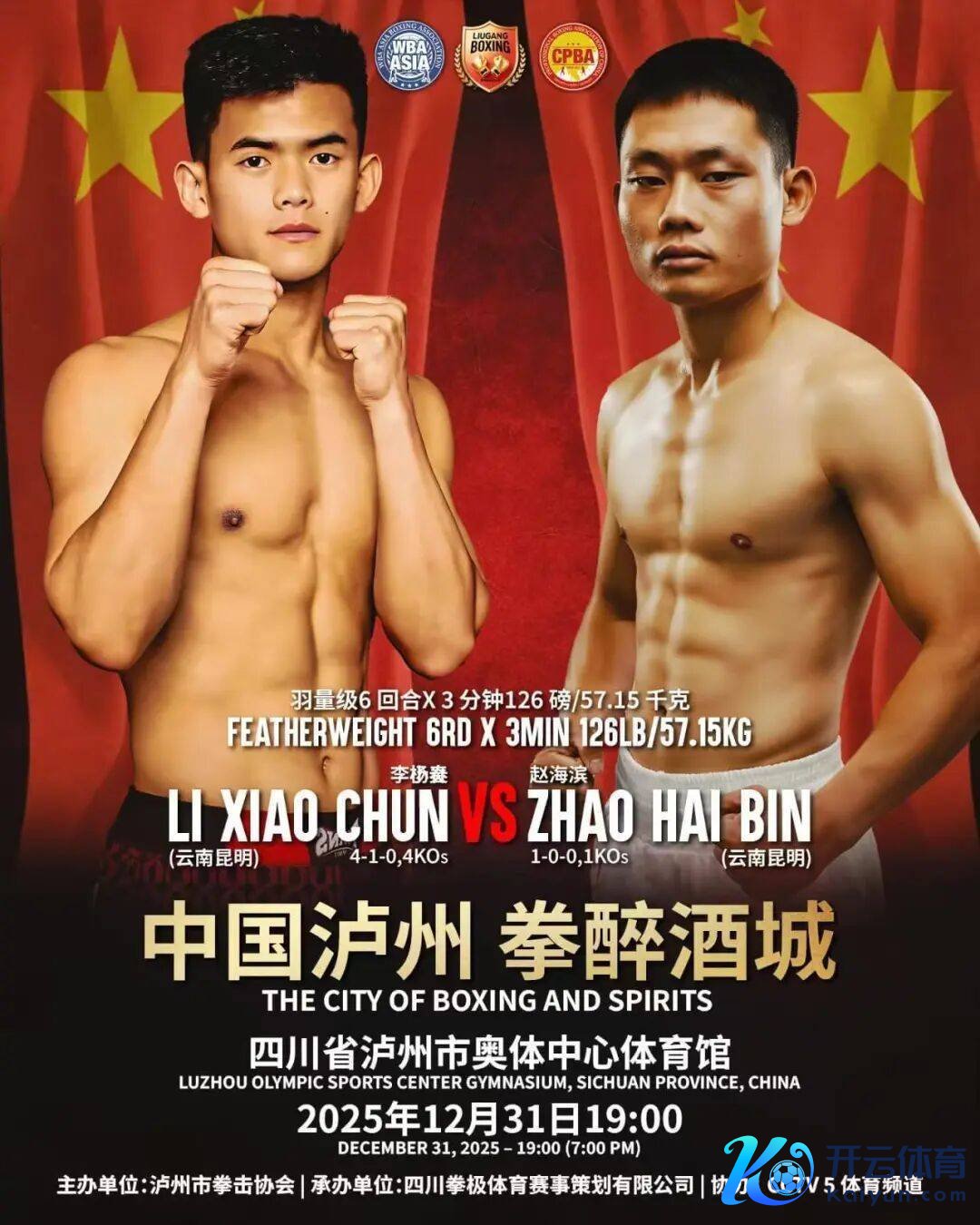 2025年12月31日19:00,“中国泸州 拳醉酒城”WBA亚洲拳王争霸赛将火爆打响体育集锦,让咱们相约泸州市奥体中心体育馆,一同见证中国力量向世界之巅进发!