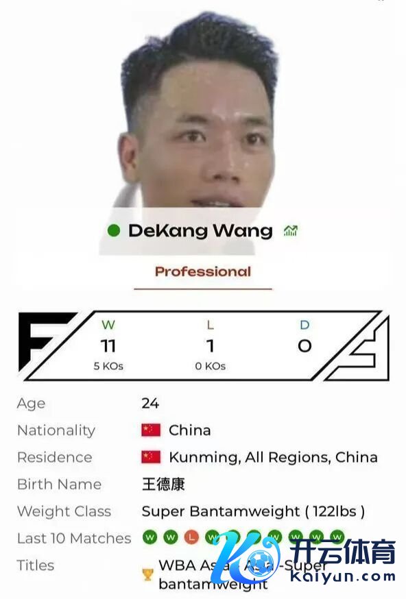 另一场重头戏在WBA超最轻量级亚洲拳王王德康与印度名按次一的拳手达曼德尔之间伸开。王德康本年只须25岁,是熊朝忠细君罗秀的表弟,来自熊朝忠外洋拳击健身俱乐部,恰是受熊朝忠成为中国首位世界拳王的影响,让这位时髦内敛的小伙子决心走上功绩拳击这条谈路。王德康从17岁运转插足阐发功绩拳击比赛,现在保捏着12战11胜5场KO敌手的功绩战绩,他亦然熊朝忠弟子中在体能、计谋打发、意志、举座实力等方面俱佳的拳手之一。在当年两里,王德康先是在广州10回合TKO宿将赵君,拿下WBA洲际头衔;客岁1月,王德康在泰国曼谷10回合完胜领有30场功绩赛教化的菲律宾悍将罗西亚;本年5月,王德康4回合TKO挑战者朱利亚诺·范托内,第四次卫冕WBA亚洲金腰带。