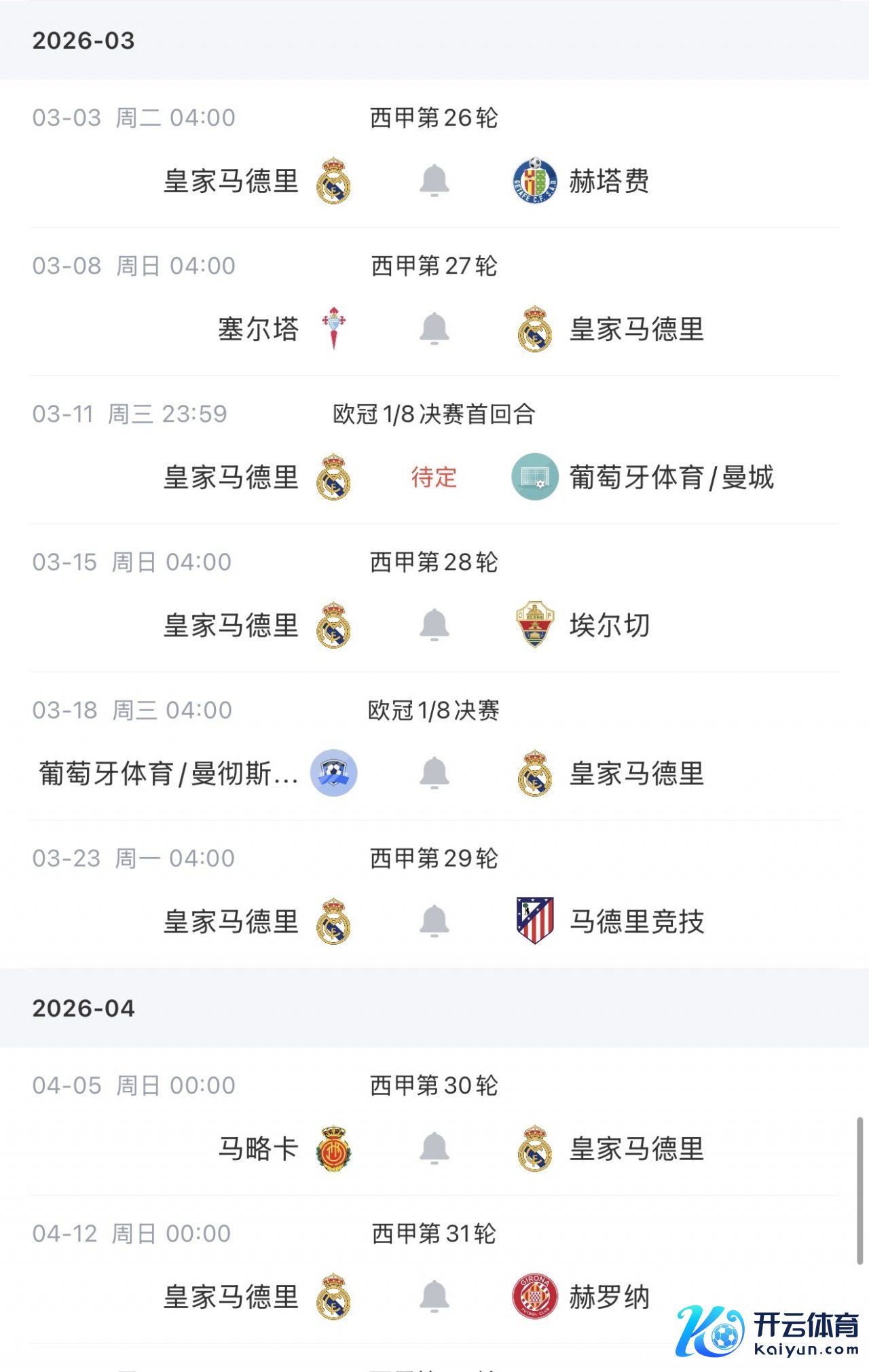 皇马将在1/8决赛中对阵葡体粗略曼城,字据赛程,1/8决赛在3月10日和17日进行,1/4决赛首回合在4月7日,次回合在4月14日前后。