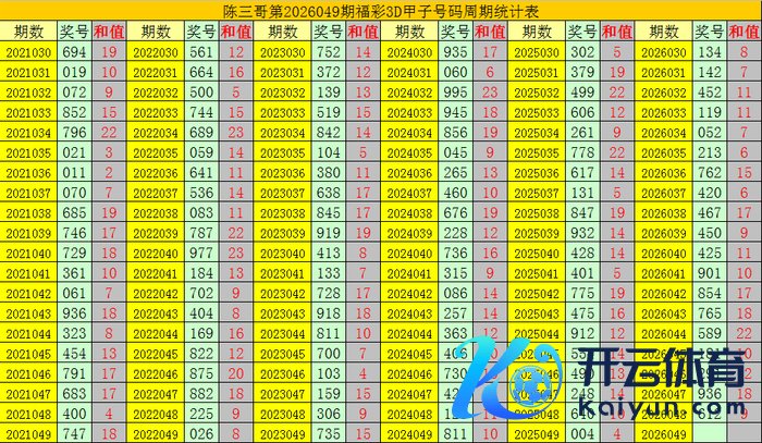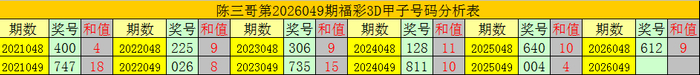 陈三哥3D第2026049期甲子号分析: