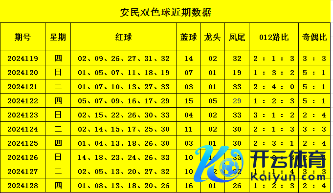 上期回顾红球开出01,08,13体育集锦,18,20,26。蓝球开出16,龙头01,凤尾26。012路比1:2:3。奇偶比2:4。