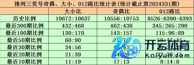 上期追思:成列三第2024331期出现奖号712。开出组六,奇偶比2:1体育集锦,012路比0:2:1,大小比1:2,和值10,跨度6。