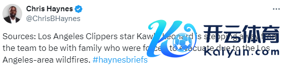 北京技能1月9日,据名记Chris Haynes报说念,音讯东说念主士骄横,快船球星莱昂纳德因个东说念主原因暂时离队。据悉,小卡离队的原因是,他要奉陪因在南加州的山火而被动疏散的家东说念主们。