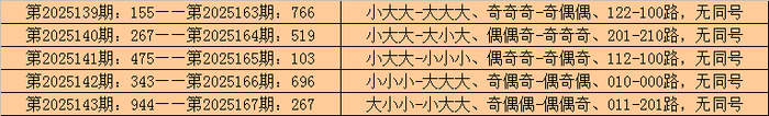 在陈设三历史开奖中,第2025139期-第2025143期聚首5期奖号为:155-267-475-343-944。