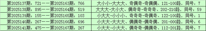 陈设三第2025163期-第2025167期聚首5期奖号为:766-519-103-696-267。
