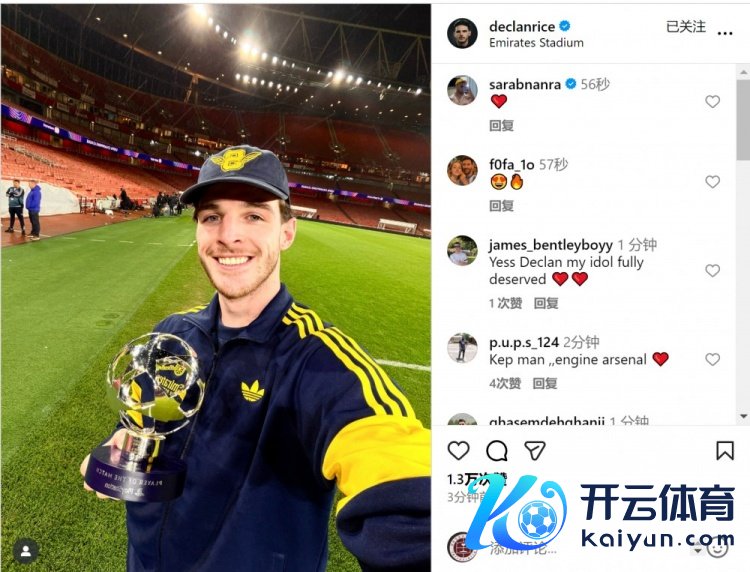 此役赖斯为阿森纳踢满全场弘扬出色,当选全场最好球员,赖斯社媒晒起始拿全场最好奖杯的像片,庆祝球队取胜。
