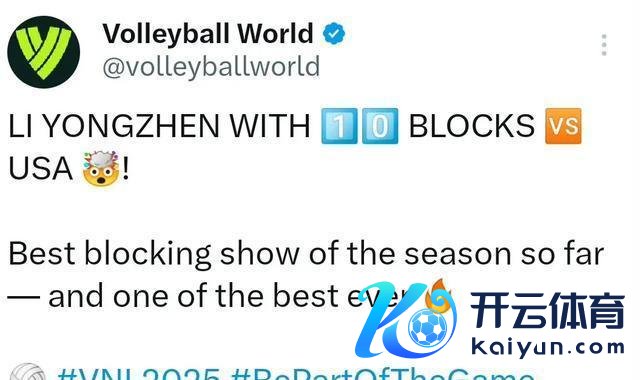 固然比赛输了,海宁考验一脸不爽,但外洋排联却在酬酢平台上专门夸了李咏臻,并说“对好意思国男排的十次拦网,这几乎是本赛季最利弊的发达,他亦然历史上最顶级的拦网手之一!”