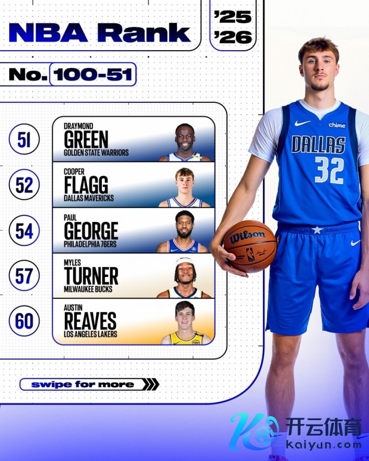 9月23日讯 好意思媒ESPN评比出了新赛季的百大球员榜,其中100-51部分球员排行如下。