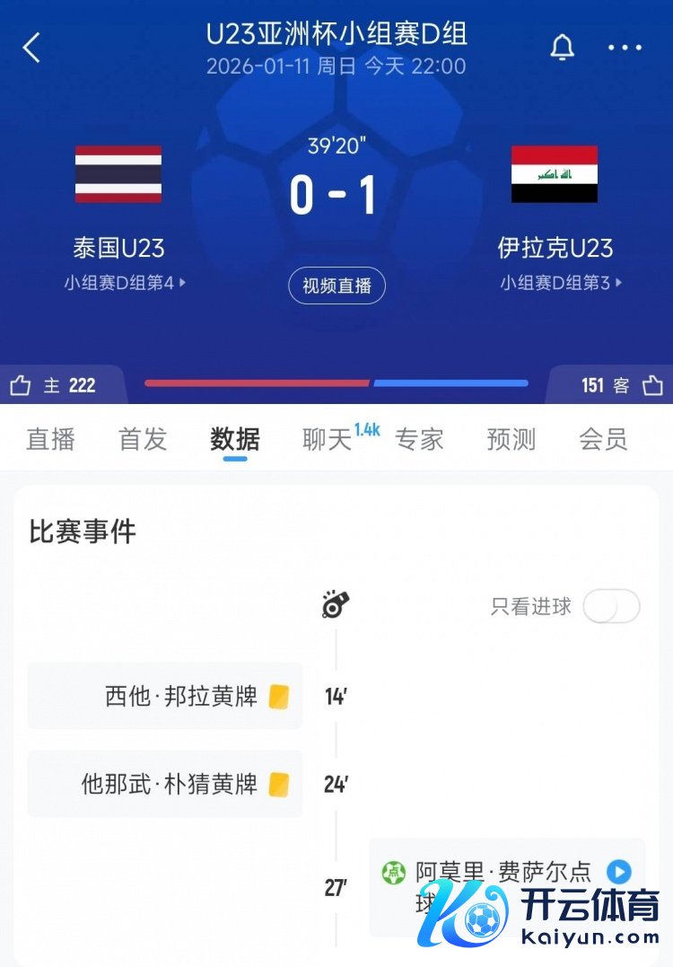 1月11日讯 U23亚洲杯小组赛D组第2轮,伊拉克U23对战泰国U23,半场放肆伊拉克凭借阿莫里·费萨尔的点射破门,暂时以1-0特出。
