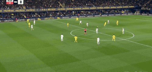 第62分钟,比利亚雷亚尔的苟且球设想奥秘,莫雷诺身边无东谈主,确凿将球打高,黄潜自家球迷都摊手抒发起火。