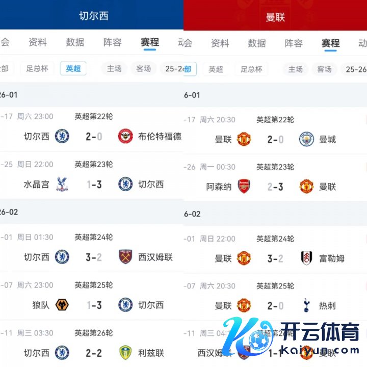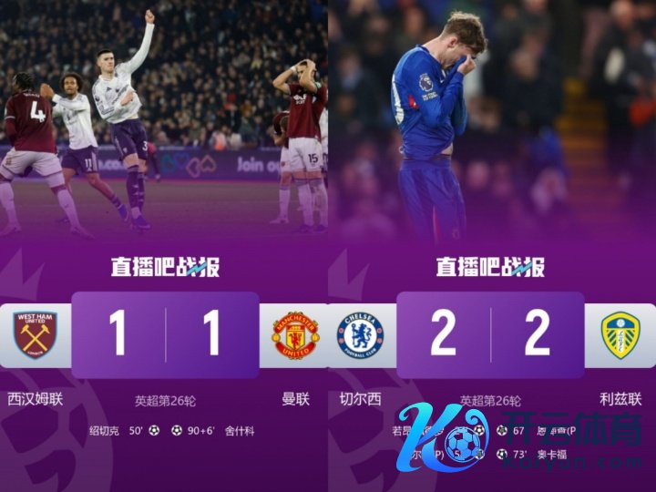 02月11日讯 英超第25轮,曼联1-1绝平西汉姆,切尔西2-2利兹联,两边近期的4轮连胜均遭到闭幕。