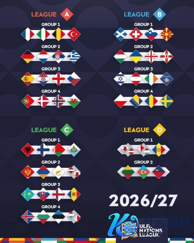 欧足联公布2026-27赛季欧国联分组抽签遵循。