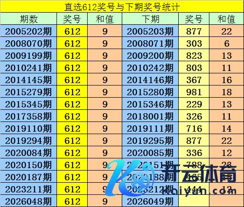 第2026048期3D奖号为:612,历史上该号码直选开出15次,下期号码分辨为:877、303、823、803、367、981、229、326、716、877、336、788、465、444。