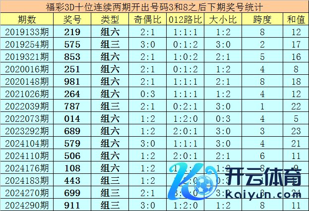 十位号码:前两期十位别离出现奖号3-8,历史上福彩3D联络前后别离开出号码3-8的险恶共开出68次。在十位3-8的险恶出当前,最近15期其下期别离开出号码:219-575-853-251-981-264-787-014-689-579-506-108-443-699-911;