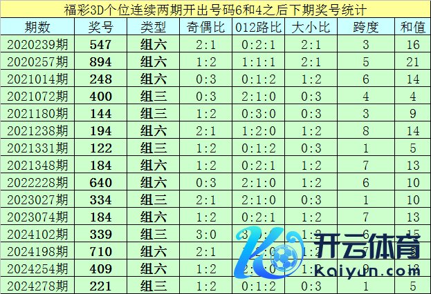个位号码:最近两期个位开出号码为6-4,在福彩3D历史开奖中,前后两期个位别离开出号码6-4的奖号出现了72次。最近15期个位6-4组合出现之后,其下期奖号别离为:547-894-248-400-144-194-122-184-640-334-184-339-710-409-221;