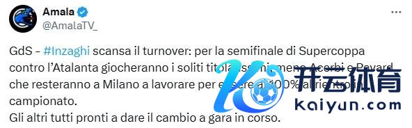 米体:因扎吉隐匿交替制:在对阵亚特兰大的超等杯半决赛中,将派出旧例主力声势,除了阿切尔比和帕瓦尔,他们将留在米兰践诺,以在联赛重启时达到100%的景象。